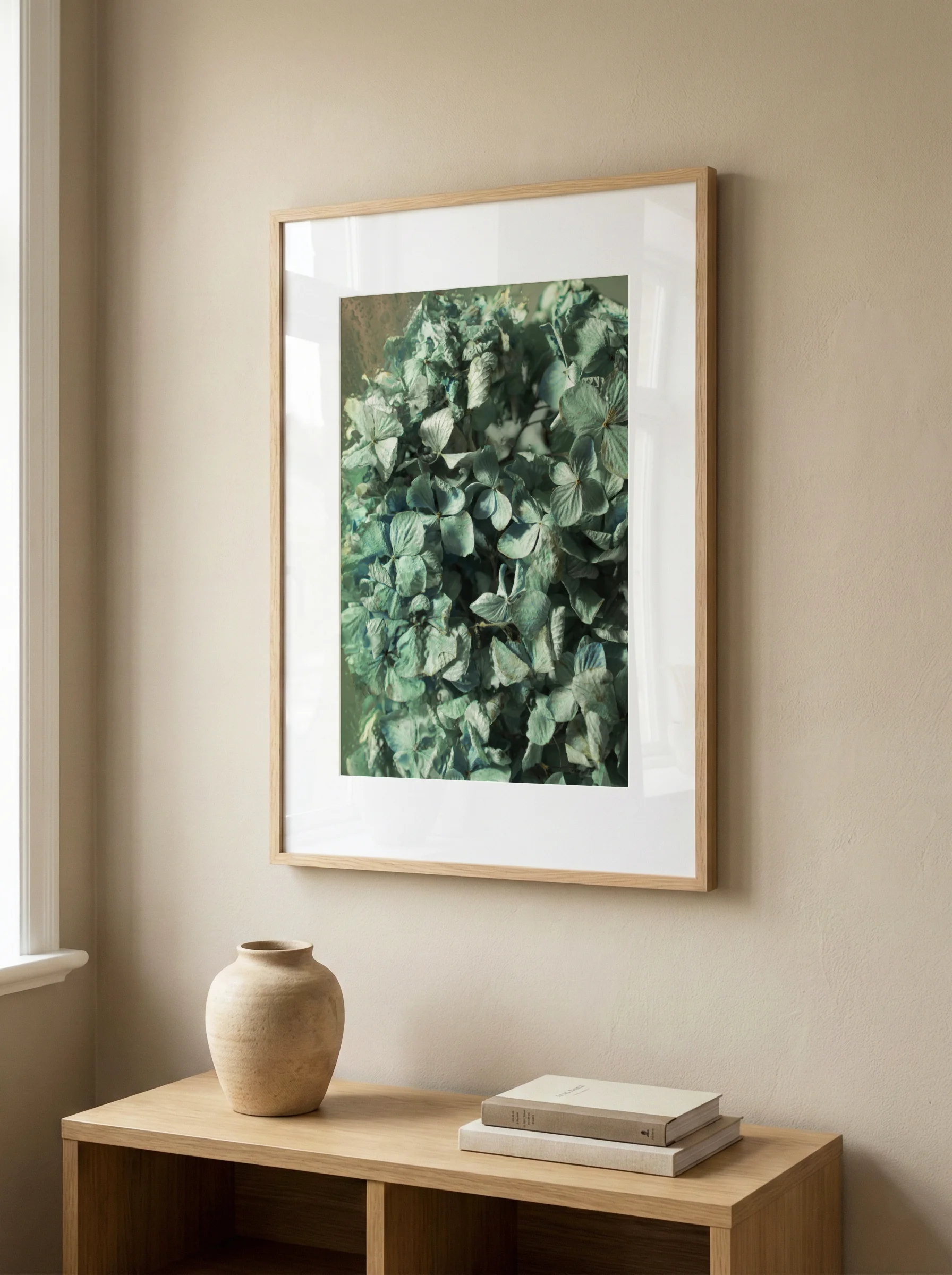 Plakat Kwiaty za Szybą – elegancki dodatek do nowoczesnych wnętrz, salonu lub biura.